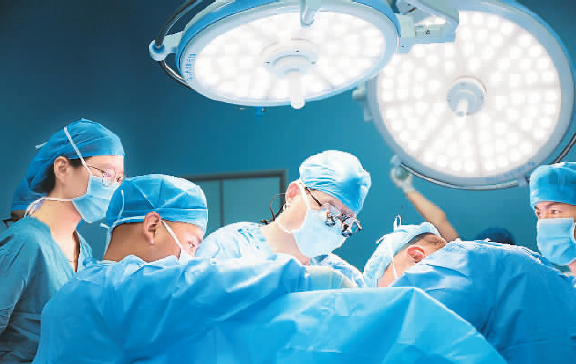 图为董家鸿院士(中)在青海大学玉树藏族自治州人民医院为肝包虫病患者做手术。