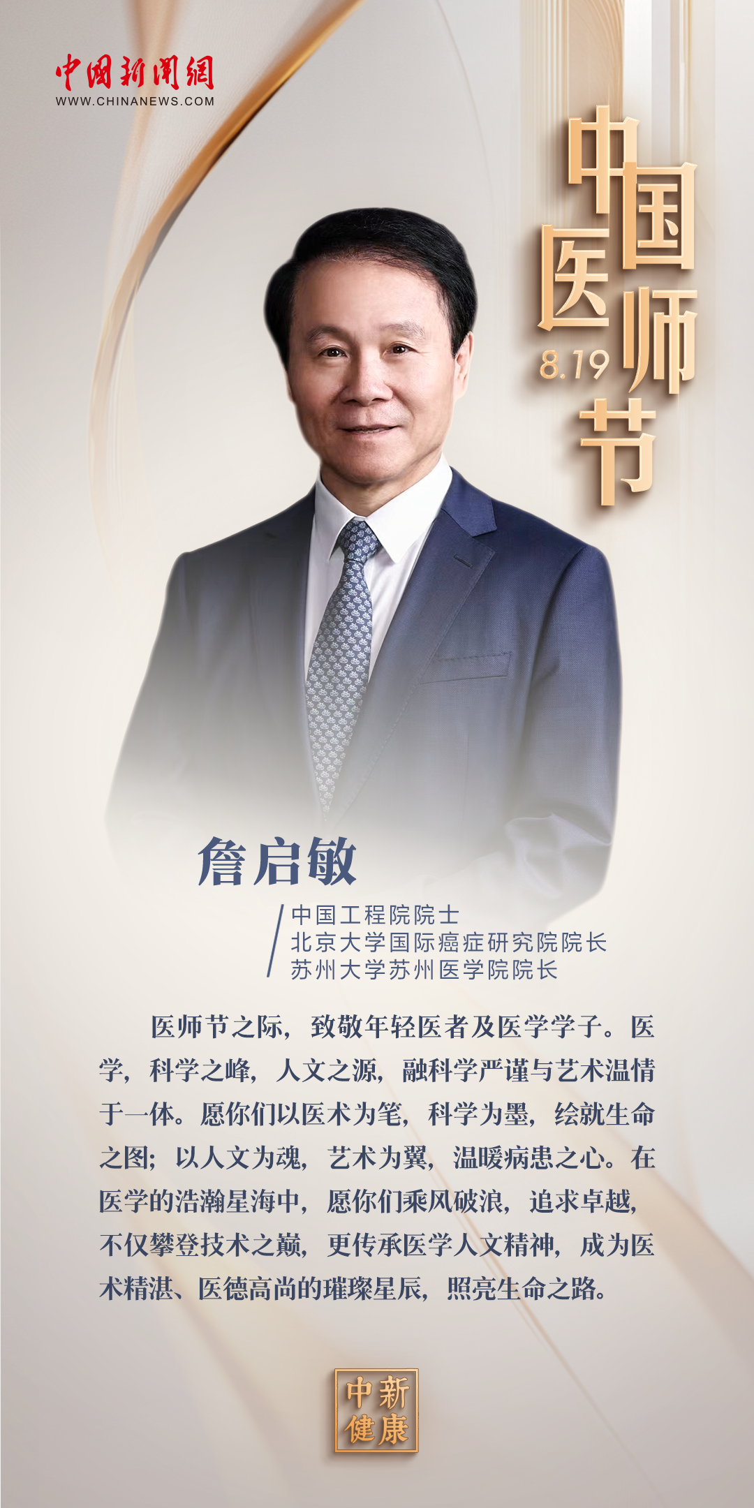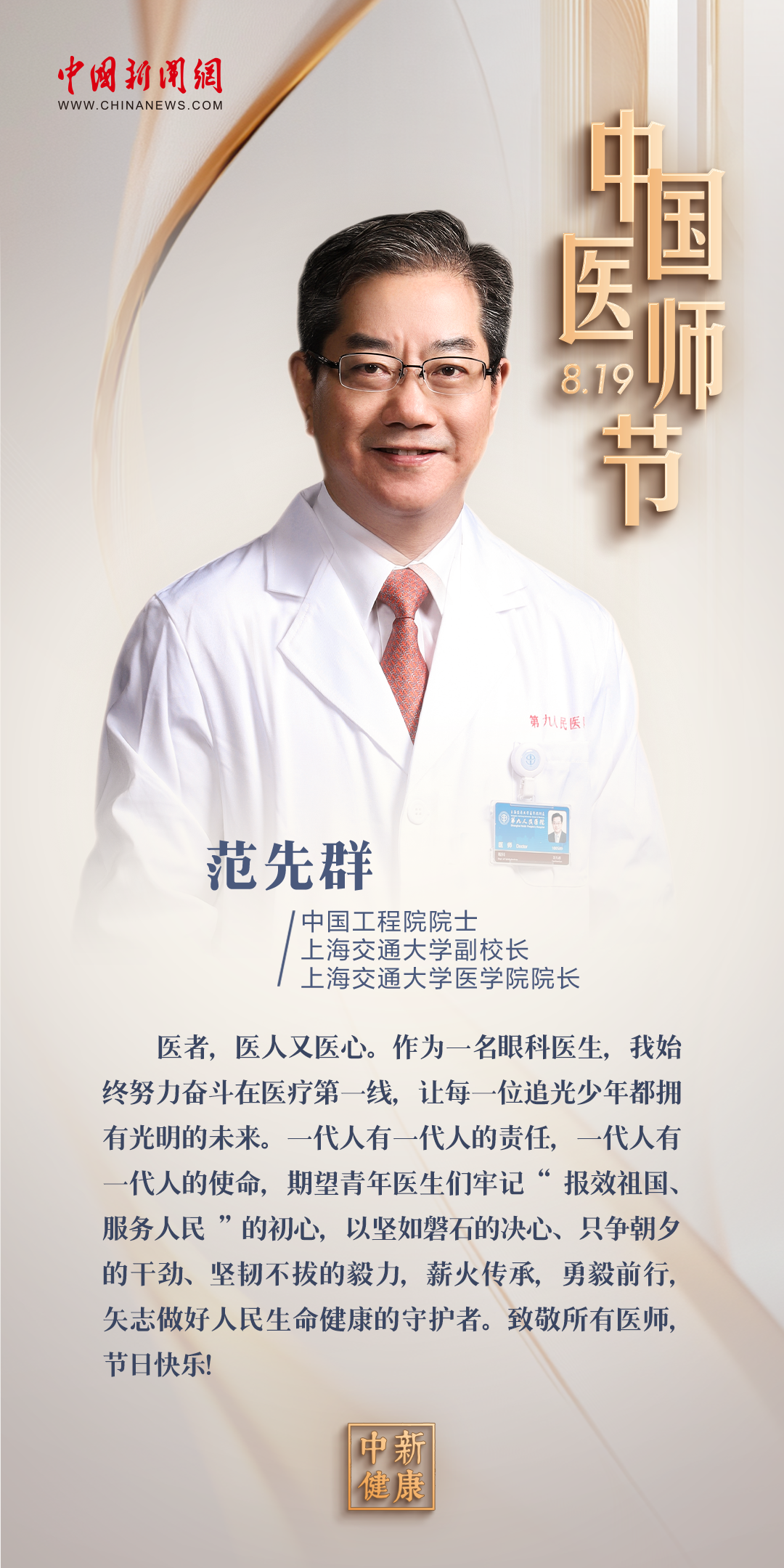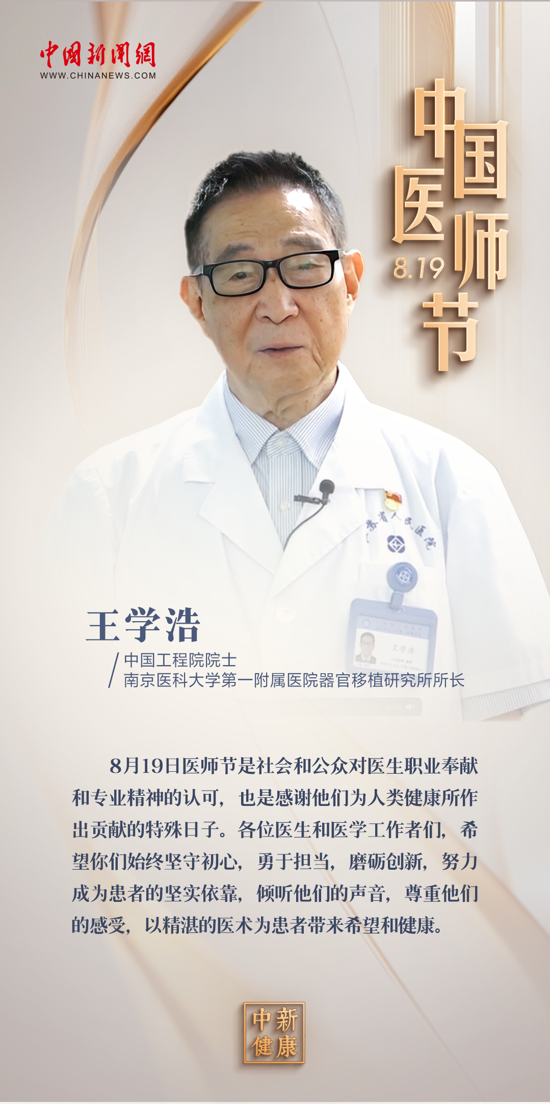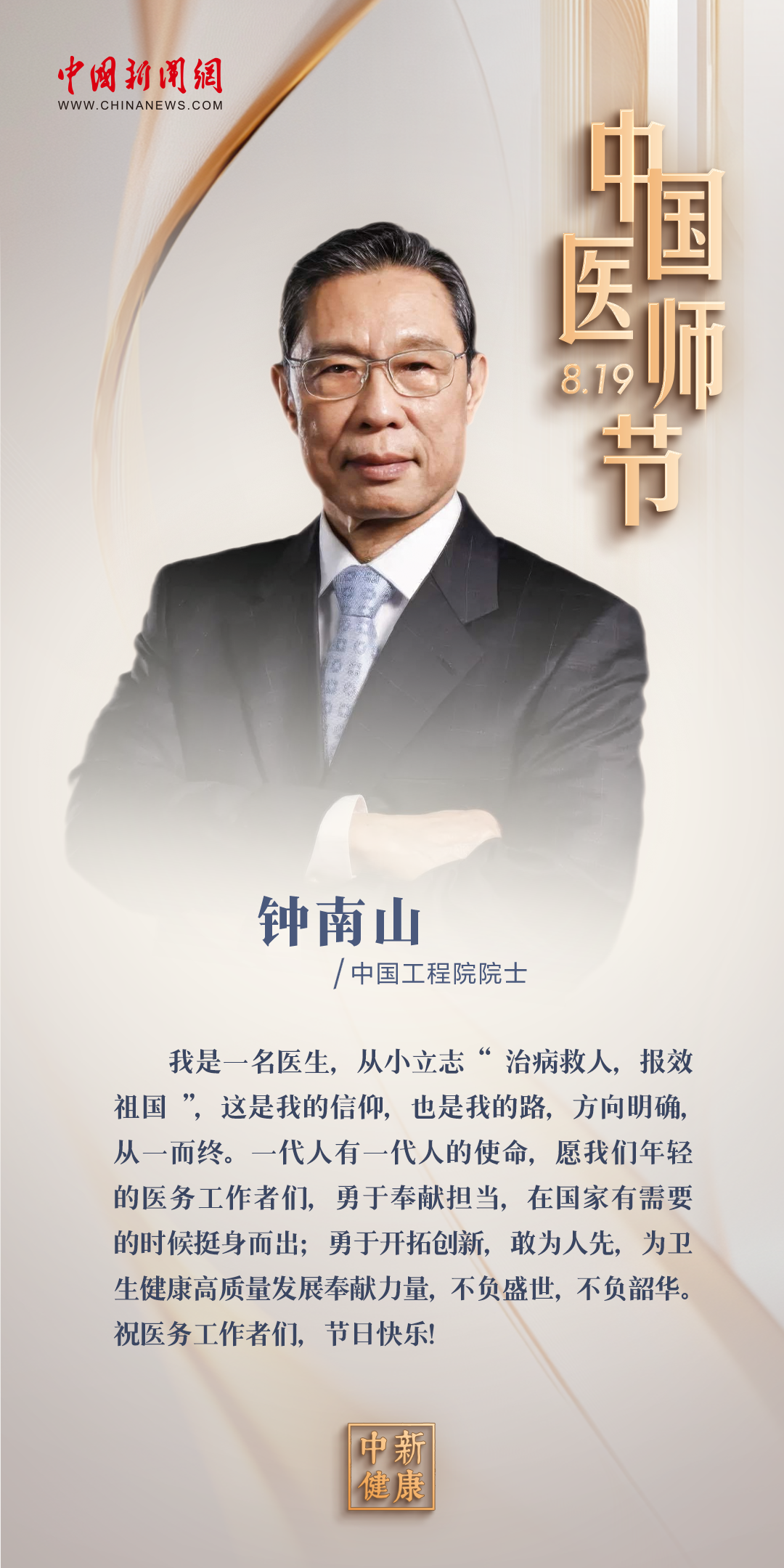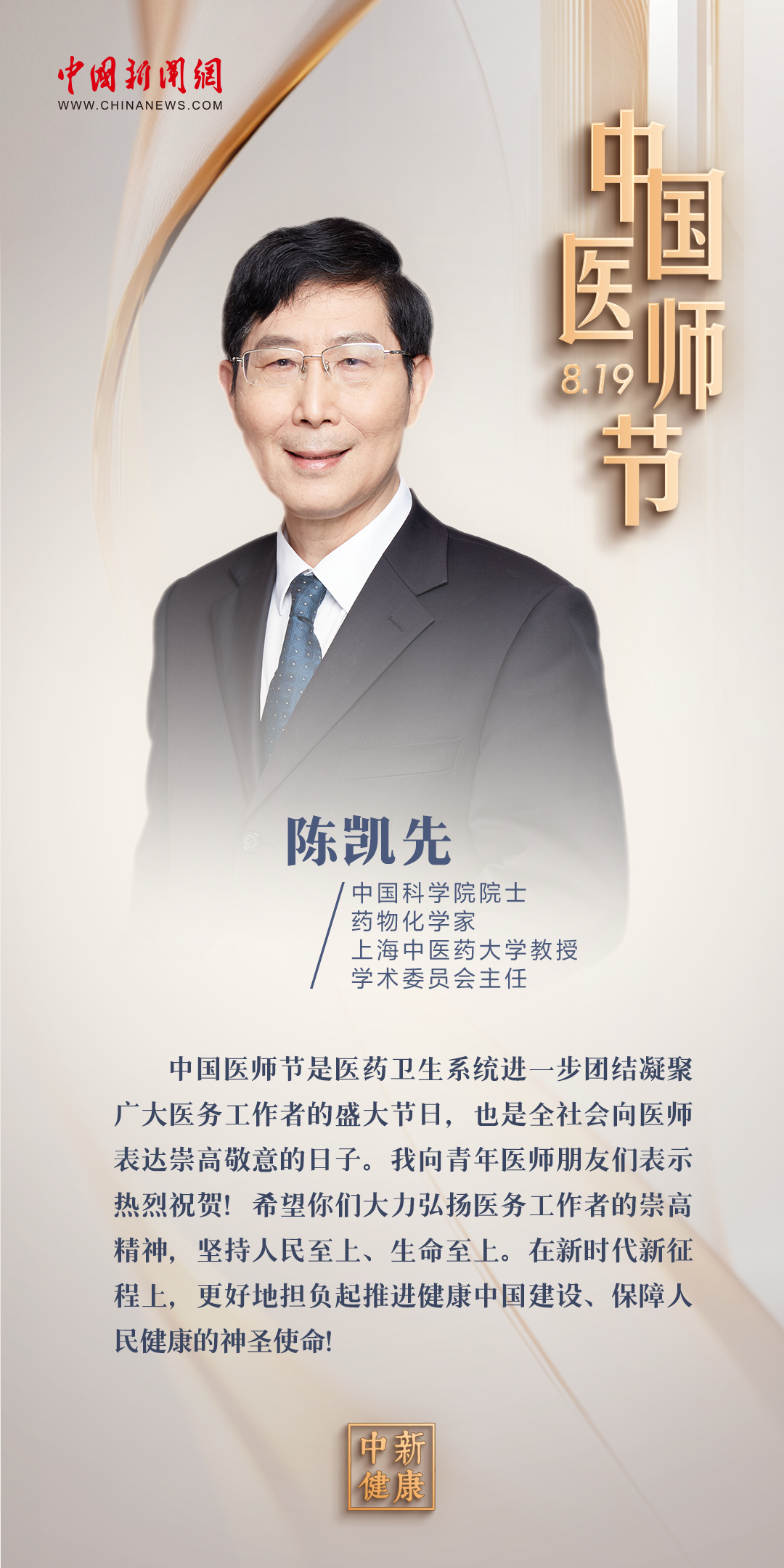 2024年8月19日,第七个中国医师节到来之际,来自中国科学院和中国工程院的16位院士,通过中国新闻网“中新健康”向广大医务工作者致以节日的祝福。