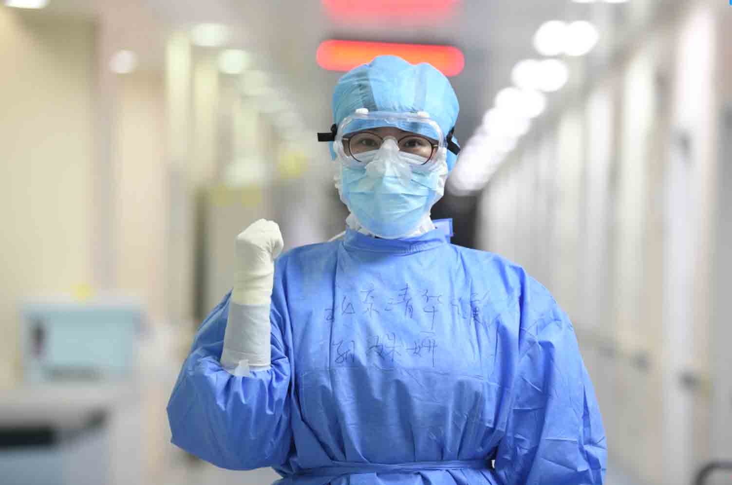图为清华长庚医院护士孙姝妍在武汉协和医院西院新冠肺炎病区