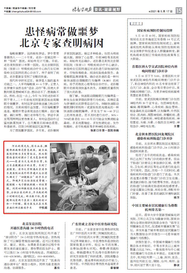 新闻链接:《健康咨询报》2021-5-17 第15版
