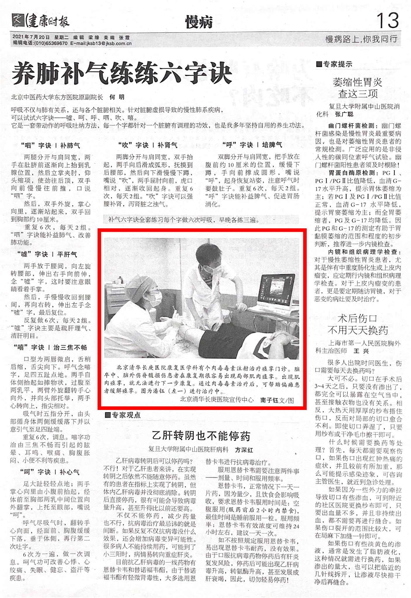 北京清华长庚医院康复医学科有个肉毒毒素注射治疗痉挛门诊。脑卒中、脑外伤脊髓损伤患者在康复期很容易出现局部肌肉痉挛。出现肌肉痉挛,就无法进行下一步康复。通过肉毒毒素治疗后,可帮助偏袒患者缓解痉挛。图为潘钰(左一)进行治疗中。