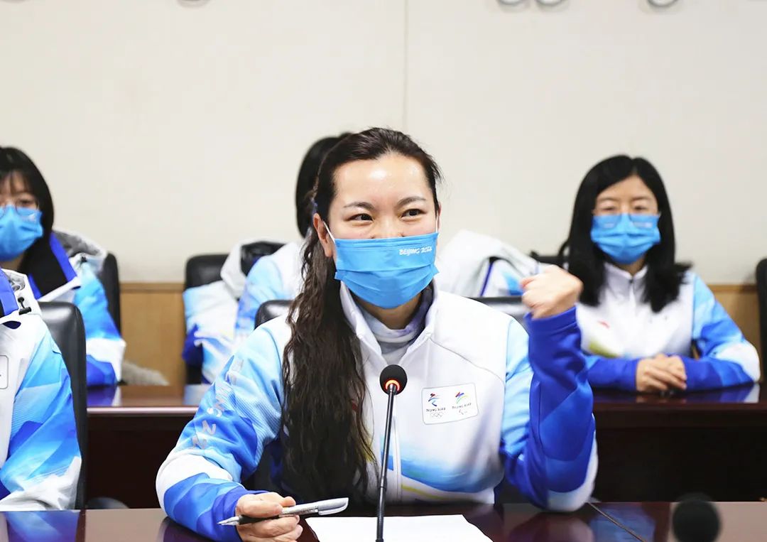 北京清华长庚医院举办冬奥医疗保障队出征仪式上曹莉萍代表队员们发言