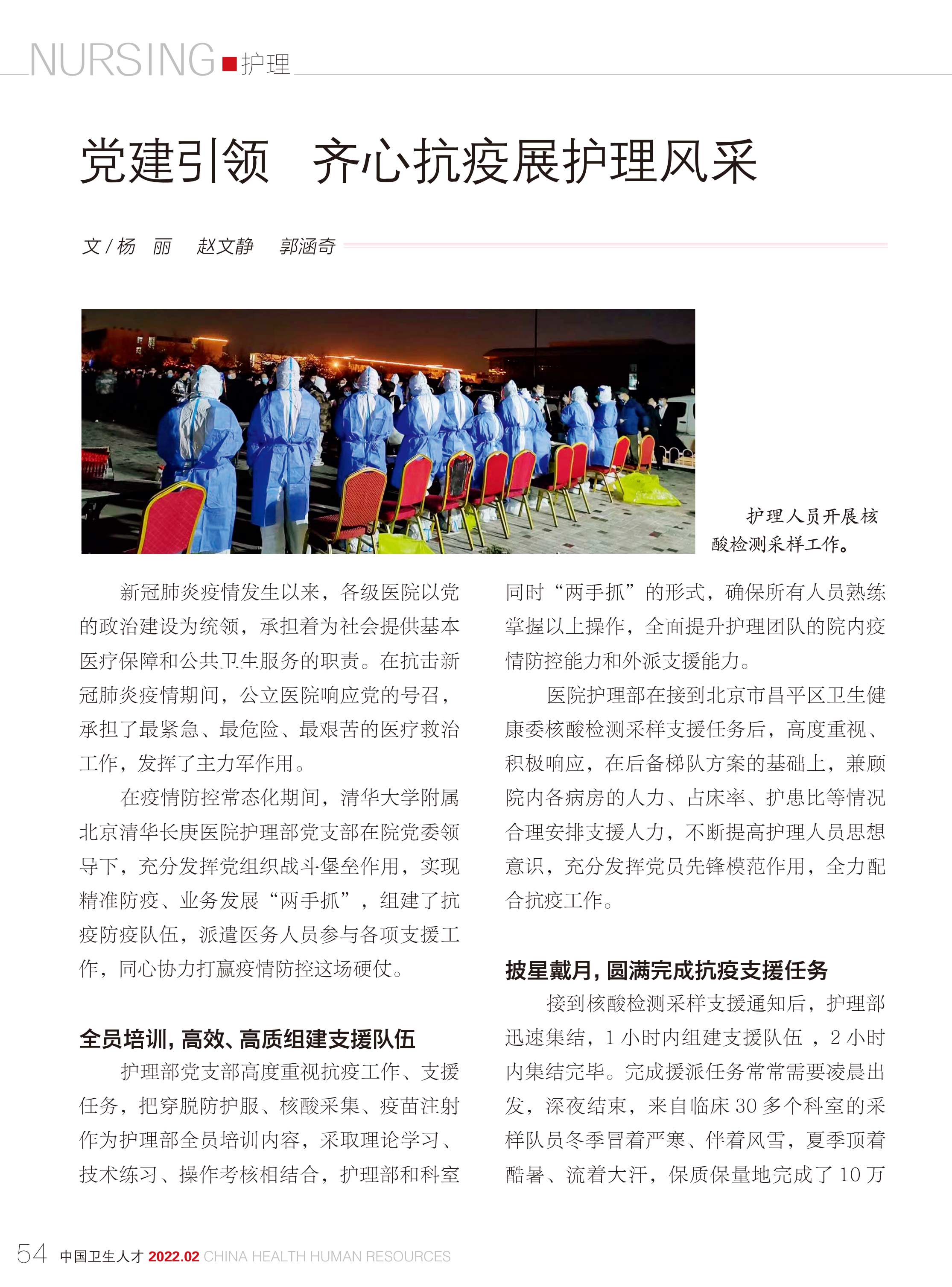 《中国卫生人才》杂志刊登我院抗疫文章:党建引领 齐心抗疫展护理风采