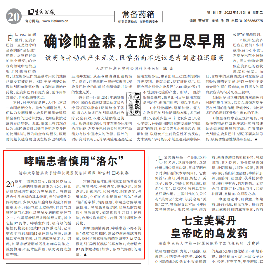 如果因病情需要,哮喘患者不得不使用“洛尔”类药物时,建议咨询医生或者药师,及时将缓解哮喘的药物调整为M受体激动剂(异丙托溴铵气雾剂等),或者增大β2受体激动剂(如沙丁胺醇气雾剂)的用量。▲
