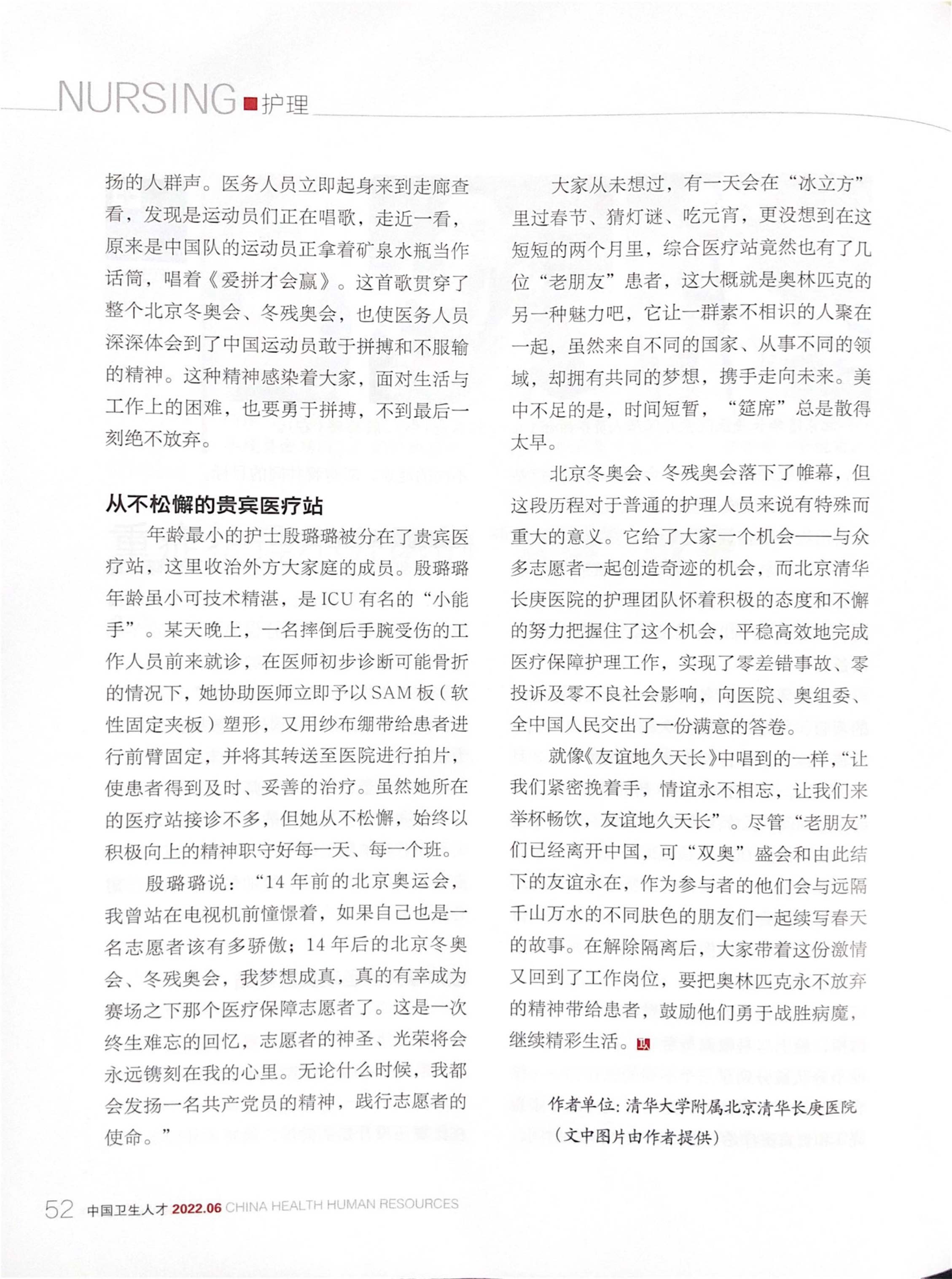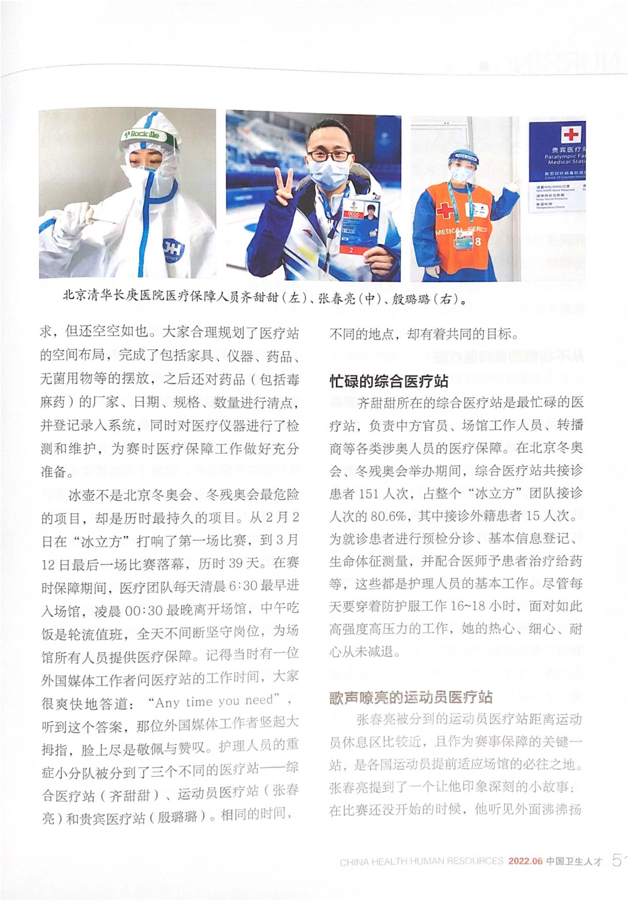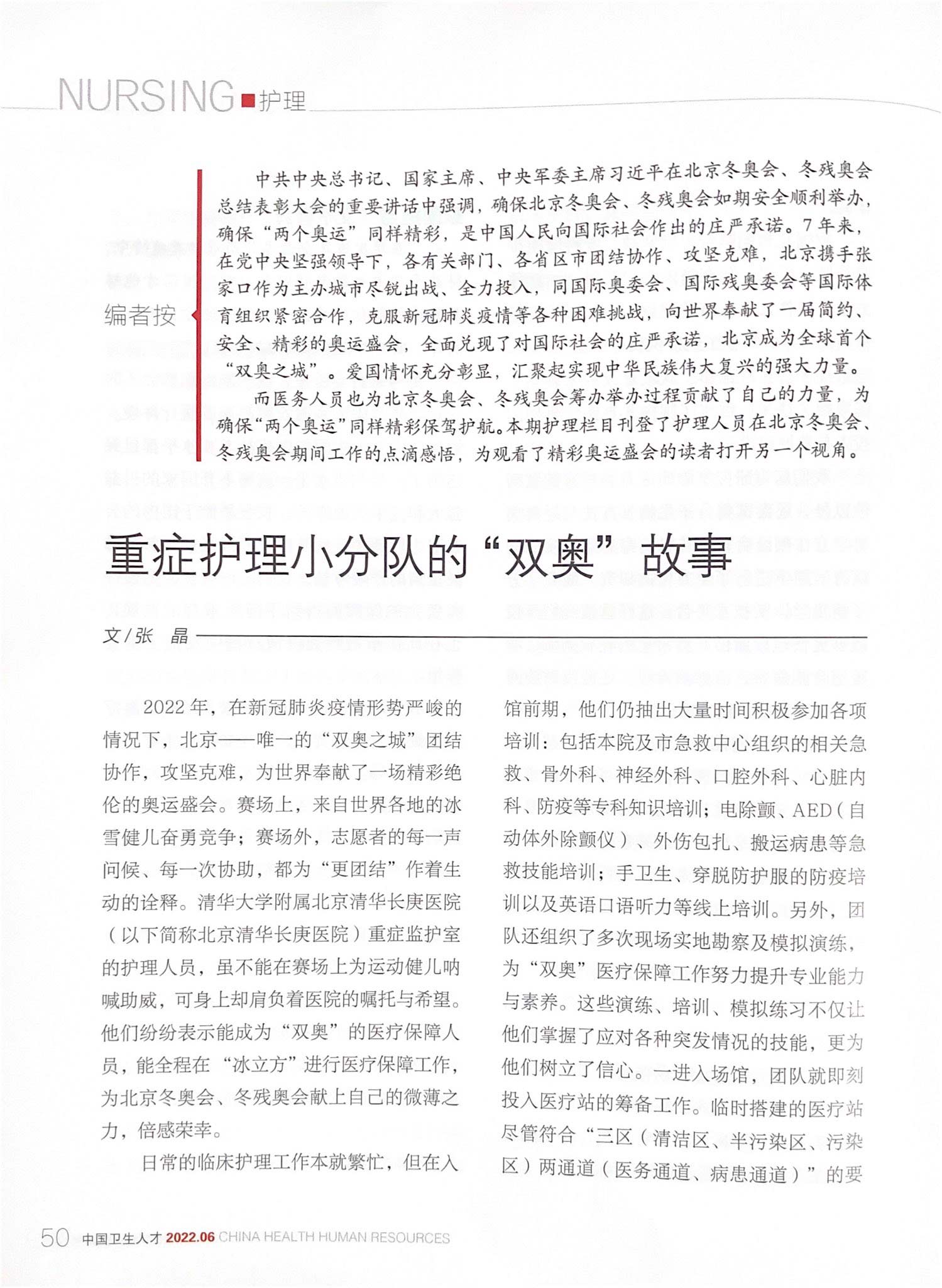 中国卫生人才杂志刊登我院冬奥保障文章:重症护理小分队的“双奥”故事