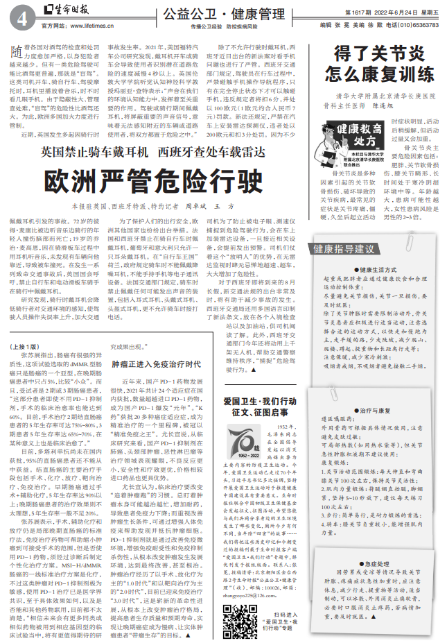 除了关节肿胀时需要限制活动外,骨关节炎患者应积极进行适当运动,注意选择合适的运动方式,以快走和慢跑为主,走平缓的路,少走陡坡,减少爬山、爬楼、蹲起、提重物和长距离行走等;