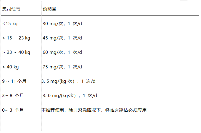儿童抗流感病毒药物预防剂量详细剂量见下表——