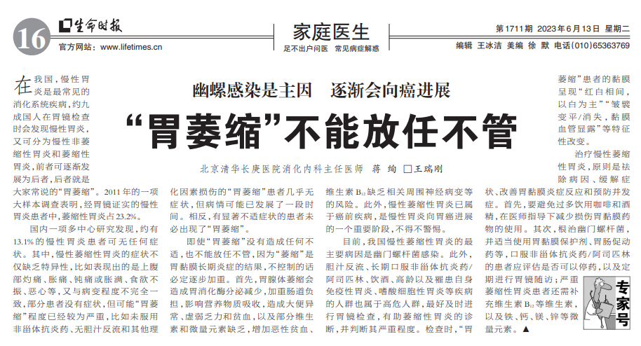 在我国,慢性胃炎是最常见的消化系统疾病,约九成国人在胃镜检查时会发现慢性胃炎,又可分为慢性非萎缩性胃炎和萎缩性胃炎,前者可逐渐发展为后者,后者就是大家常说的“胃萎缩”。2011年的一项大样本调查表明,经胃镜证实的慢性胃炎患者中,萎缩性胃炎占23.2%。