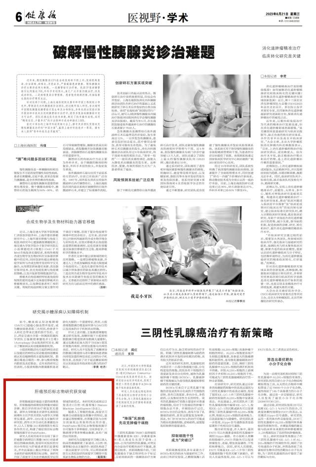 肝细胞癌是肝癌最主要的病理类型。肝细胞癌的病理组织图像对癌症诊断、预后评估和治疗规划至关重要。清华大学附属北京清华长庚医院病理科主任尹洪芳团队与清华大学精密仪器系、清华-IDG/麦戈文脑科学研究院、清华大学自动化系课题组合作,以人工智能(AI)和病理医生相互协作的方式,构建了癌症预后标志物智能挖掘平台PathFinder。
