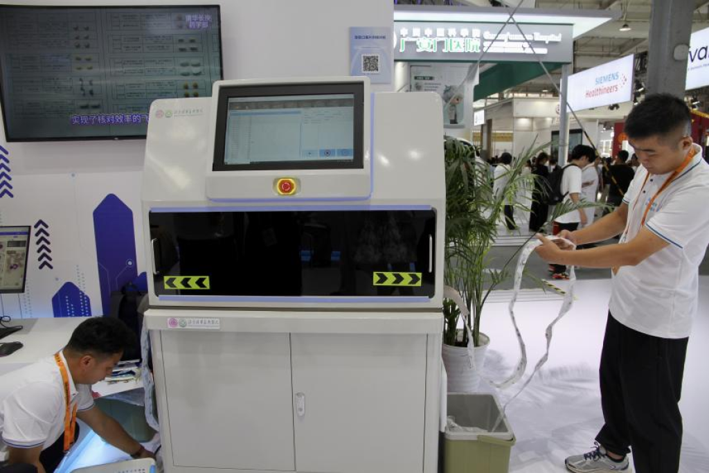 在2025年中国国际服务贸易交易会(简称“服贸会”)现场,一台白色的一体化设备正在安静地运转:一袋袋住院病人的口服药通过传送带依次进入智能片剂核对机的识别区,仅仅 0.7秒,屏幕上跳出核对结果:“正常”。
