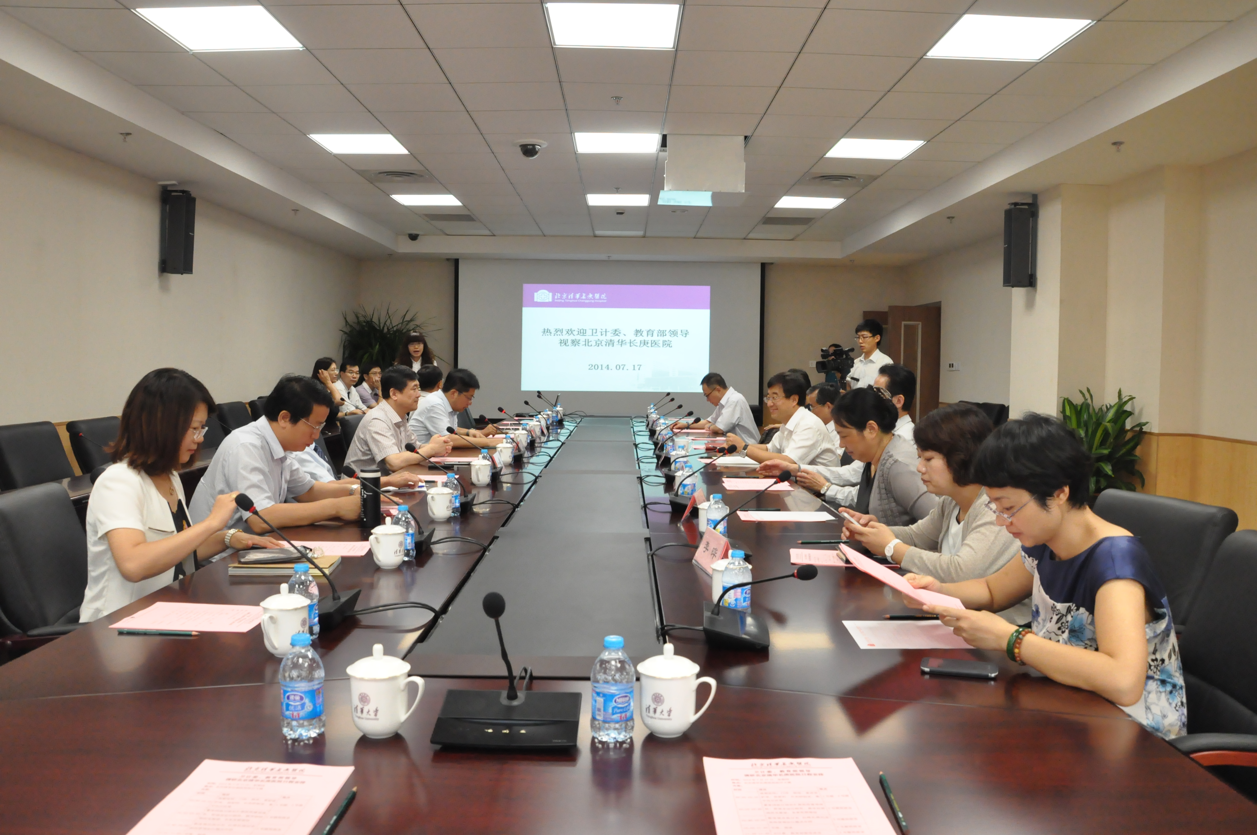 (通讯员 韩冬野)7月17日,国家卫生计生委(以下简称卫计委)科教司王辰院士、副司长,科教司金生国副司长,教育部高教司石鹏建副司长一行到北京清华长庚医院视察调研,了解医院建设进展,并听取了我院医疗管理筹备与规划的汇报,对医院的经营管理与科室规划进行了指导。