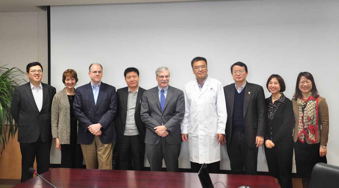 Michael J.Klag教授一行首先参观了医院的门诊大厅、诊间布局、检查科室以及病房等硬件设施,北京清华长庚医院学术委员会主席董家鸿教授与Michael J.Klag教授等人在医疗大楼内进行了交流。