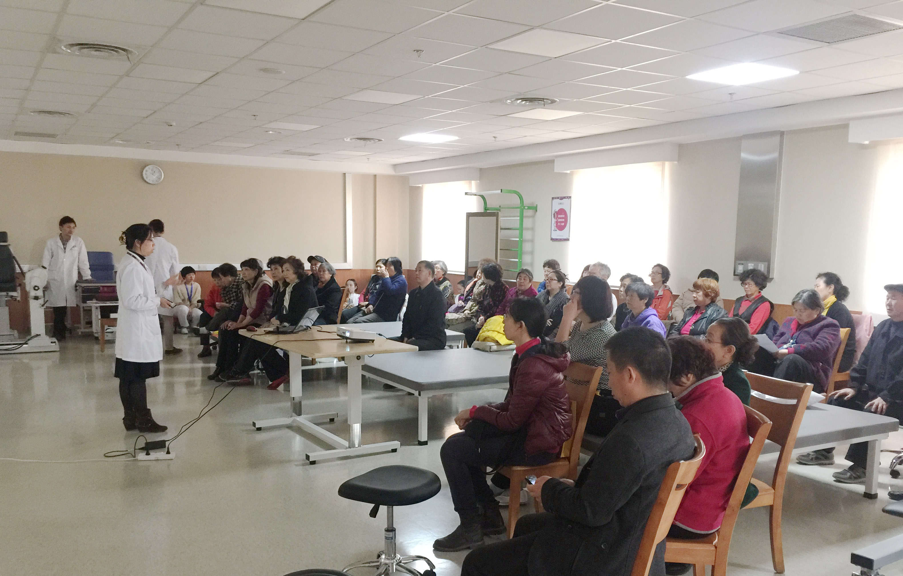 (通讯员 马春岳)2015年3月25日,北京清华长庚医院门诊楼三层康复医学科门诊,科室主任潘钰带领医师及治疗师团队,在保证日常的康复医学科康复治疗工作同时,为社区居民进行健康宣教和义诊,40余名社区居民前来学习颈肩腰腿痛的相关知识,并接受了义诊服务。