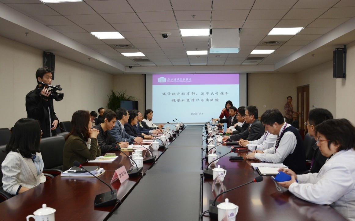 (通讯员 韩冬野)2015年4月1日,教育部党组成员、部长助理林蕙青同志到北京清华长庚医院视察,巡视医院医疗服务与科研教学开展情况。清华大学校长邱勇、副校长姜胜耀,清华长庚医院党委书记王志华、总执行长郭明和等陪同视察。