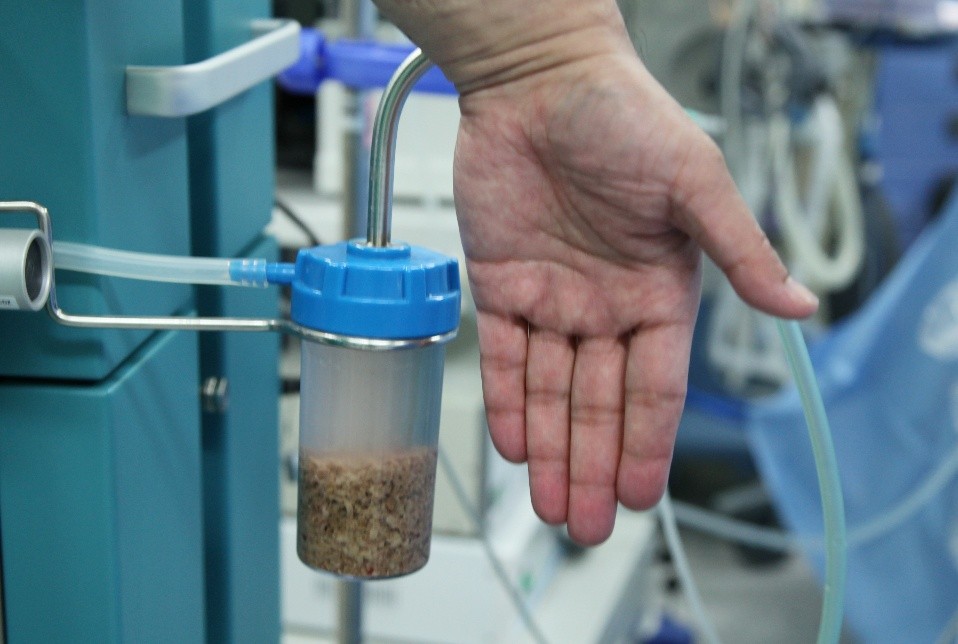 作为国内知名泌尿结石治疗专家,李建兴已先后成功完成了上万例经皮肾镜取石术,其中,治愈的类似“石头妹妹”,解剖发育异常、结石合并严重感染的病例就达近千例。手术由李建兴主刀,胡卫国医师一同,在3分钟内就建好了通往结石的肾脏“通道”,顺利完成了手术最关键的第一步。随后,李建兴凭借丰富的临床经验,经过15分钟的肾镜碎石与清理,成功清除了“石头妹妹”体内的“石头”,经术中超声检查,肾内结石已被一次性全部取出,容量达70余毫升。