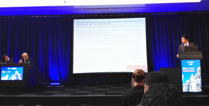 3月22日,清华长庚泌尿外科医师胡卫国在小儿泌尿外科(pediatric uorlogy)专场做了题为“Ultrasound-guided mini-percutaneous nephrolithotomy in patients aged less than 3 years:the largest reported single-center experience in China”的报告,介绍了清华长庚泌尿外科采用超声引导微通道经皮肾镜治疗3岁以下小儿上尿路结石的单中心大宗报道。