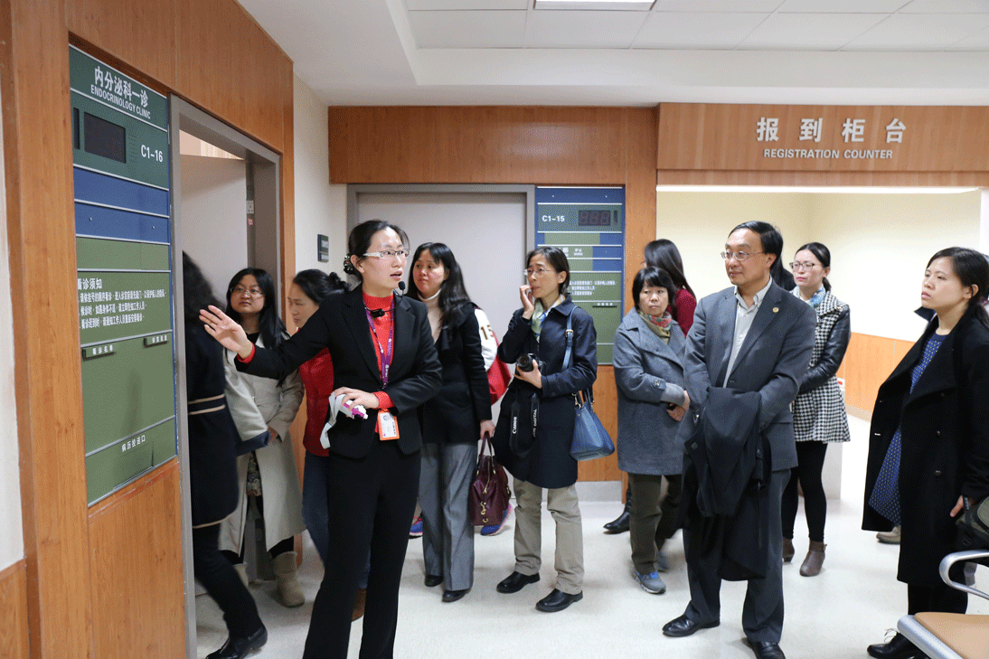 张毅处长一行首先参观了医疗大楼,并实地考察了门诊大厅、门诊诊间、住院中心、儿科区域、产科病房等环境和设施。