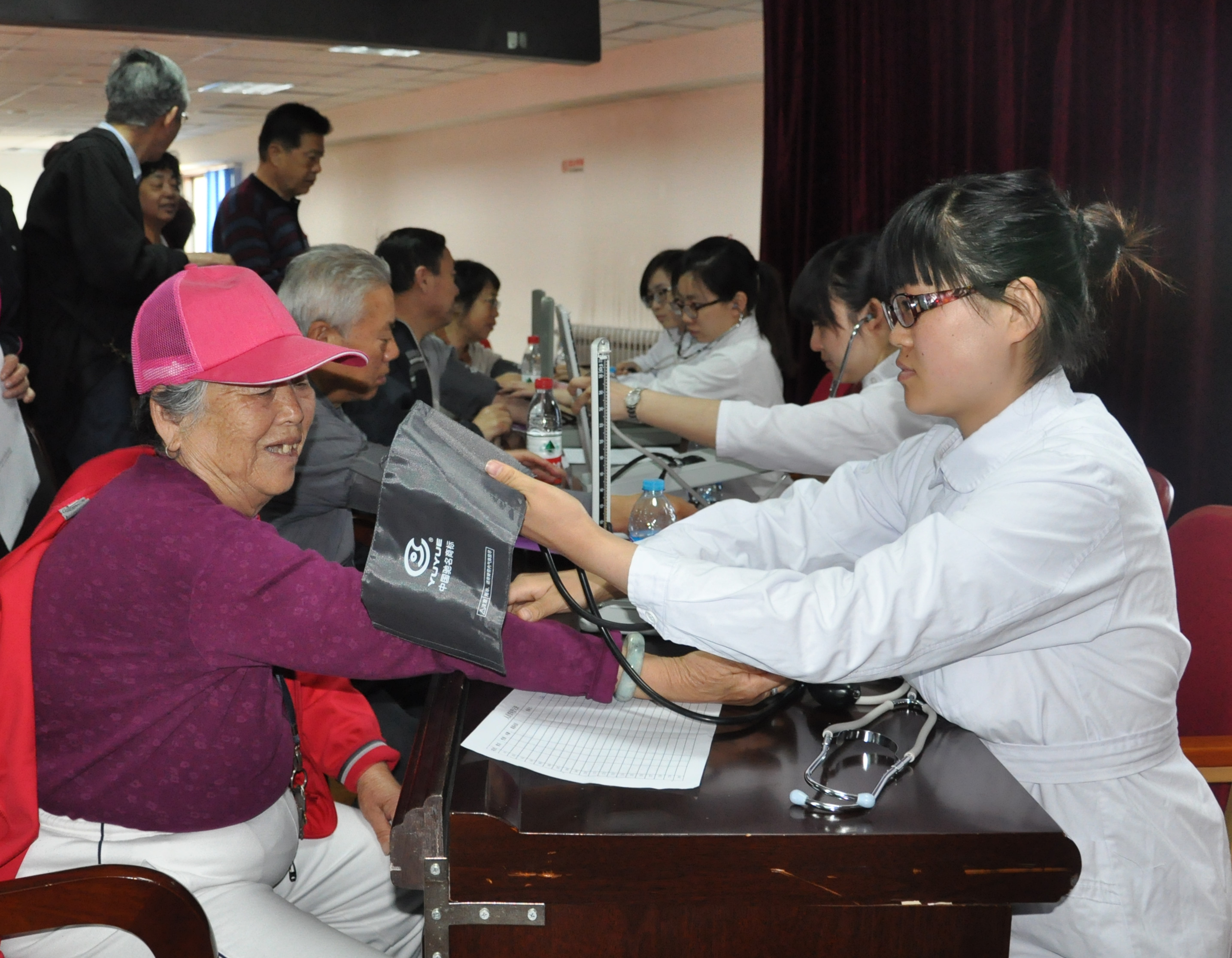 北京清华长庚医院护理人员为社区居民免费测量血压