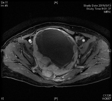 一个月前,家住河北省黄骅市的尚女士来到神经外科王贵怀主任的诊间,详细问诊后,判断为一例罕见全盆腔占位的右侧骶管内合并囊变坏死的巨大神经鞘瘤。因为肿瘤体积巨大,手术难度高、风险大,之前就诊的医院均未收治。反复发作的腰痛、右下肢痛、尿频、尿急、排便困难严重影响着尚女士的生活质量,看着患者痛苦的表情及家属期盼的眼神,王贵怀主任决定接下这个“烫手山芋”。