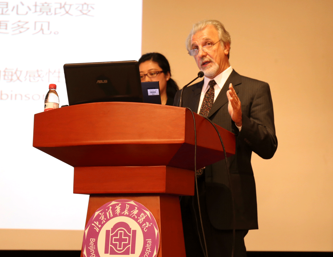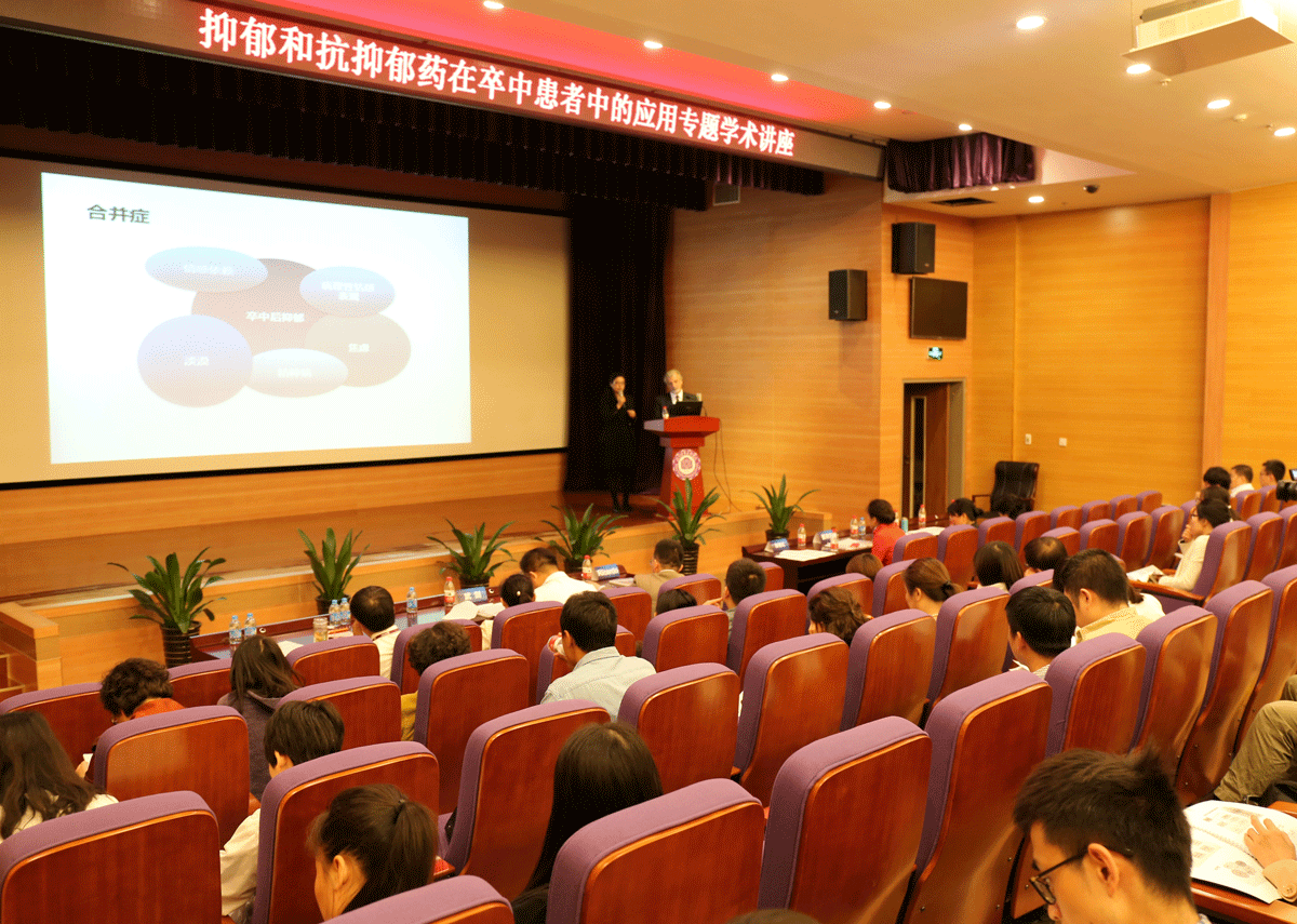 Ricardo E Jorge教授是美国德州休斯顿贝勒医学院精神和行为科学系教授,是著名的Michael E Debakey VA医学中心的TRACTS计划(Transiational Research Center for Traumatic Brain injury and Stress Disorders)休斯顿分部的负责人,同时于欧美著名医学杂志《JAMA》及《JAMA精神病学》、《American Journal of Psychiatry》、《Journal of Neuropsychiatry and Clinical Neuroscience》《Biological Psychiatry》,《Journal of the International Neuropsychological Society》等多种专科杂志、综合专科杂志担任编委。会上他做了《卒中后抑郁及抗抑郁药对于卒中康复的效果》的主题演讲,运用严谨的数据资料、高质量的实验以及幽默的言语,为大家讲述了卒中与抑郁的关系,卒中后抑郁的症状特点,以及药物治疗的最优方案。同时会上还特别邀请到来自上海华山医院的邵春红教授为大家实时翻译,帮助与会者深入的理解Richardo教授讲座的精髓。