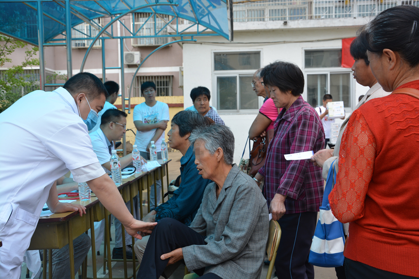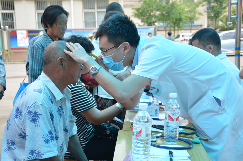 北京清华长庚医院神经内科张兴文医师为居民查体