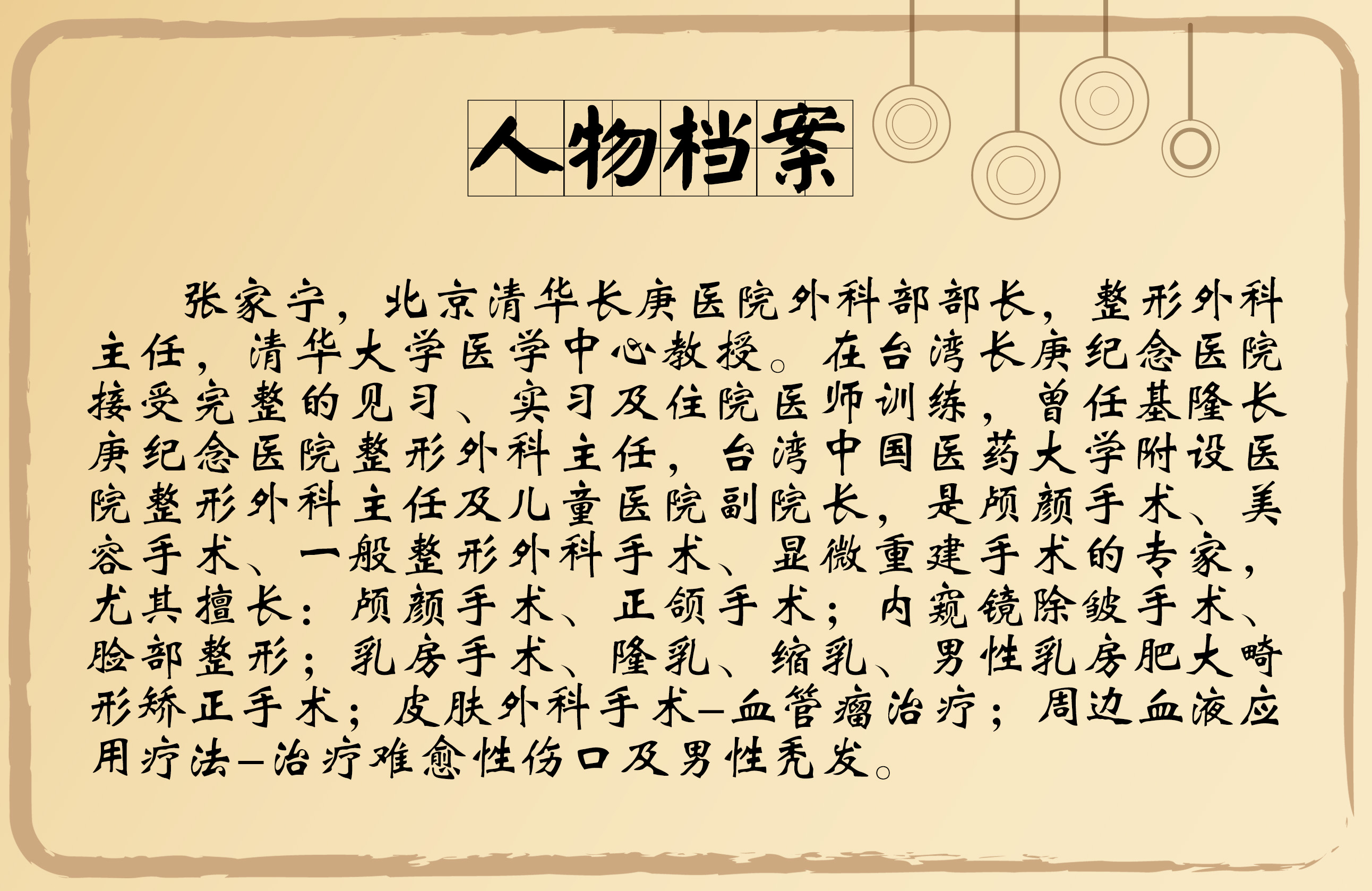 张家宁教授受训于整形外科界的名门世家台湾长庚纪念医院,师从世界顶级颌颜整形专家、前国际颅颌面外科协会主席陈昱瑞教授,历任基隆长庚纪念医院整形外科主任、台湾中国医药大学附设医院整形外科主任及儿童医院副院长,不可不谓声名显赫、功成名就了。但是她却远离了故土,孤身北上,选择在北京清华长庚医院这个全新的舞台上白手起家,这背后的动机是无数人关心和好奇的。张家宁教授对此倒是十分淡然:“我的想法其实很单纯,就是想来大陆服务更多的病人。台湾的医生已经相对饱和了,但是大陆这边却还有很多病人需要帮助。不说别的,光北京市的人口就抵得上整个台湾了。”