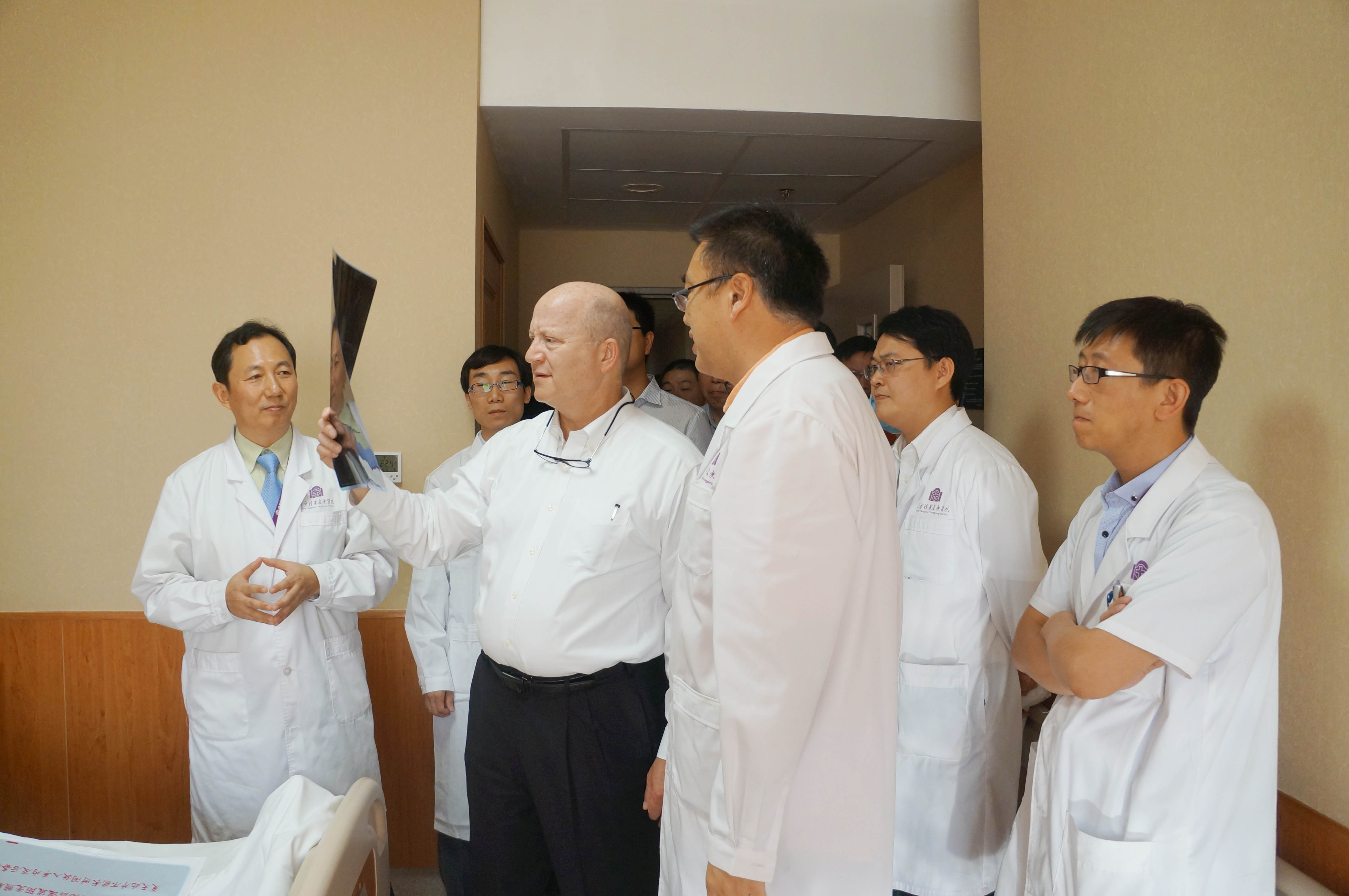 清华长庚医院7月7日电 (通讯员 韩冬野) 7月3日,华盛顿大学医学院神经外科主任Ellenbogen教授,台湾台中荣民总医院神经外科主任沈炯祺教授,以及来自全国各地的神经外科专家,应北京清华长庚医院王劲副院长和神经外科主任王贵怀邀请,来到医院神经外科病房,进行联合查房。
