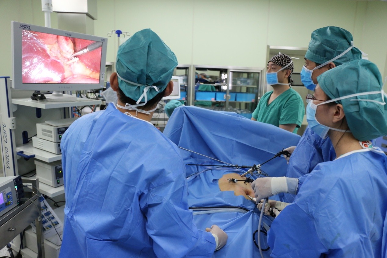 (董家鸿教授进行三孔法腹腔镜胆囊切除术)