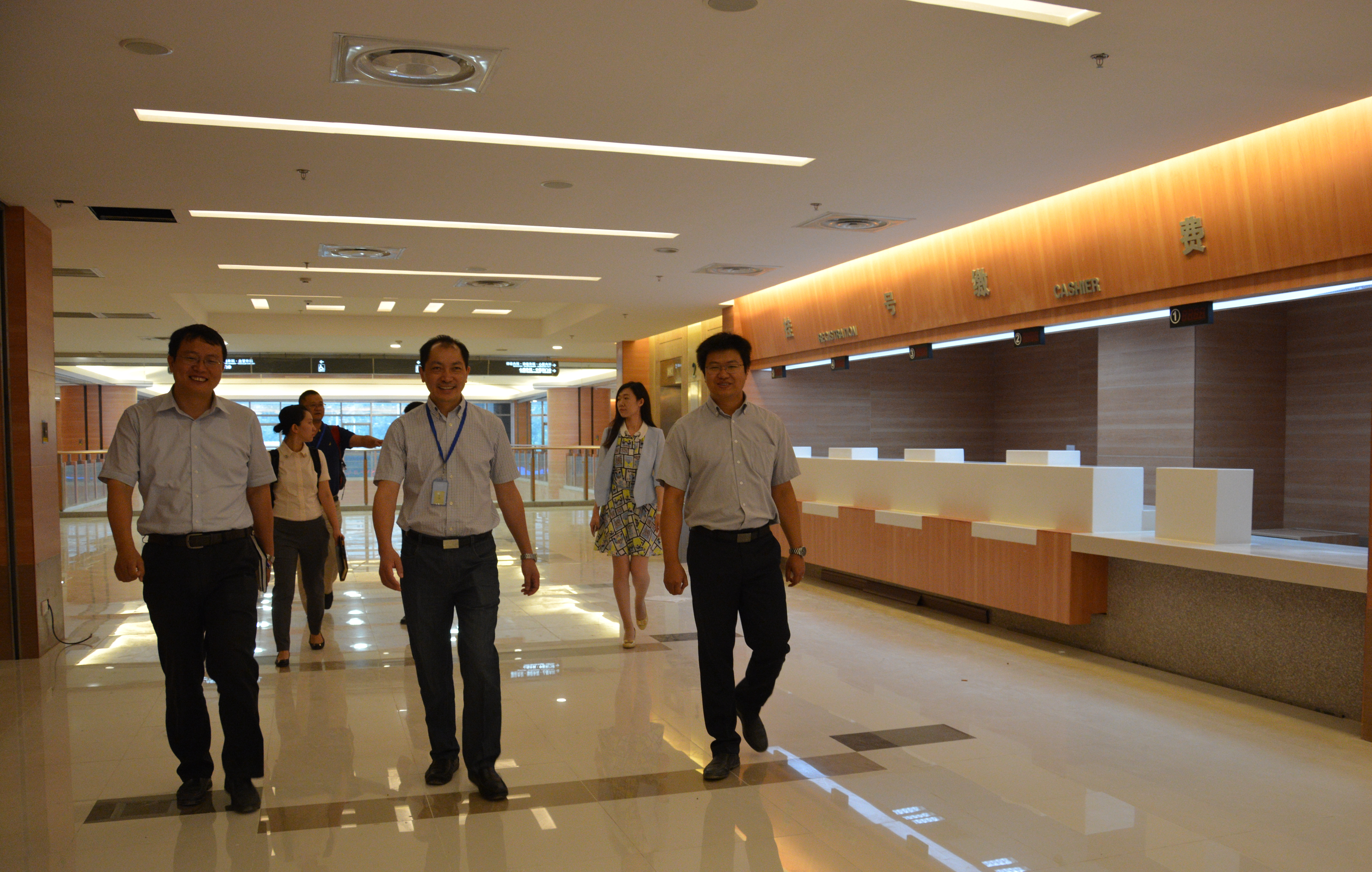 张伟一行首先参观了我院的医疗大楼,详细了解了楼内的空间动线及采购的设备。张伟对我院设备的先进性表示了肯定,同时称赞了我院空间规划的人性化,他表示,医院医疗大楼的设计从整体到细节,很好地体现了以病患为中心的服务理念。