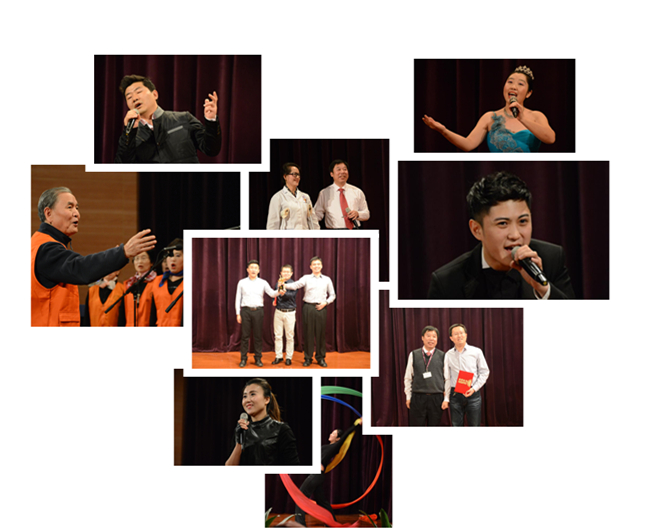 同庆抗战胜利70周年,工会主席赵刚、社服组赵晓兰领先工会小组,现场《送别》《映山红》,为比赛第一环节——红歌PK奠定“红色青春”基调。合唱有幸邀请到了国家一级歌唱演员张友堂老师及其夫人国家一级钢琴家王凤珠老师,担任合唱团的指挥和伴奏。