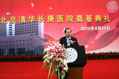2010年4月20日上午,清华大学新建附属医院——北京清华医院一期工程在昌平区天通苑隆重奠基。教育部党组成员、部长助理吴德刚,北京市发改委常务副主任卢映川,北京市卫生局副局长郭积勇,昌平区委书记侯君舒,中国医院协会副会长陈晓红,中华护理学会理事长李秀华,北京医师协会常务副会长吕鹏,台湾长庚纪念医院名誉院长陈敏夫,院长程文俊,厦门长庚医院院长沈陈石铭,台湾长庚纪念医院行政中心主任龚文华,清华大学校长顾秉林,党委书记胡和平,教育基金会理事长、原校党委书记贺美英,副校长张凤昌,校务委员会副主任庄丽君、张再兴、郑燕康、岑章志,教育部财务司、人事司领导,北京兄弟医院代表,北京市及昌平区相关委办局代表,清华大学各院系、各部处、各附属单位以及天通苑地区居民代表共计150余人见证了这一历史时刻。清华大学常务副校长陈吉宁主持了奠基仪式。