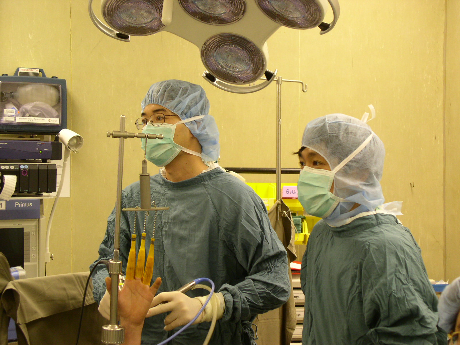 韦加宁教授是我国著名的手外科专家,被卫生部誉为“白求恩式的好医生”,是对潘勇卫影响最大的一位老师。技术上,韦教授是一位手术天才,他是世界上第一例同体断足移植手术成功的主要实施者,也是我国第一例同体拇指移植手术成功的实施者,他的研究多次获得科技成果奖励。而他所编辑绘制的《手外科手术图谱》更是将自己毕生积累的宝贵临床经验教给了后人。潘勇卫很多关于手术的想法,都是受到韦教授的启发,“他有很多很重要的想法,常常给了我很多很好的思路,引导着我去思考、去发现”。潘勇卫练就了扎实的显微外科功底,完成了大量的断肢断指再植术,曾主刀完成十指离断再植并全部获得成功。