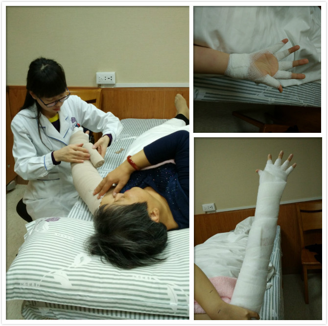 如何治疗呢?康复医学科已开展的综合消肿疗法(comprehensive decongestive therapy,CDT)是目前治疗淋巴水肿最为有效的方法!其内容包括淋巴引流,短弹力绷带加压包扎、运动、日常护理、穿戴压力衣等。