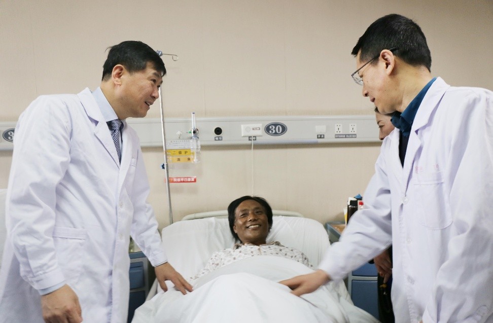 一天的忙碌开始了,第一项行程是早查房。青海大学附属医院肝胆外科现有70张病床,令人吃惊的是,半数以上的床位住的都是患肝包虫病的藏族同胞,高原的阳光拿黑了皮肤,见到从北京过来的专家时,笑容却很灿烂。