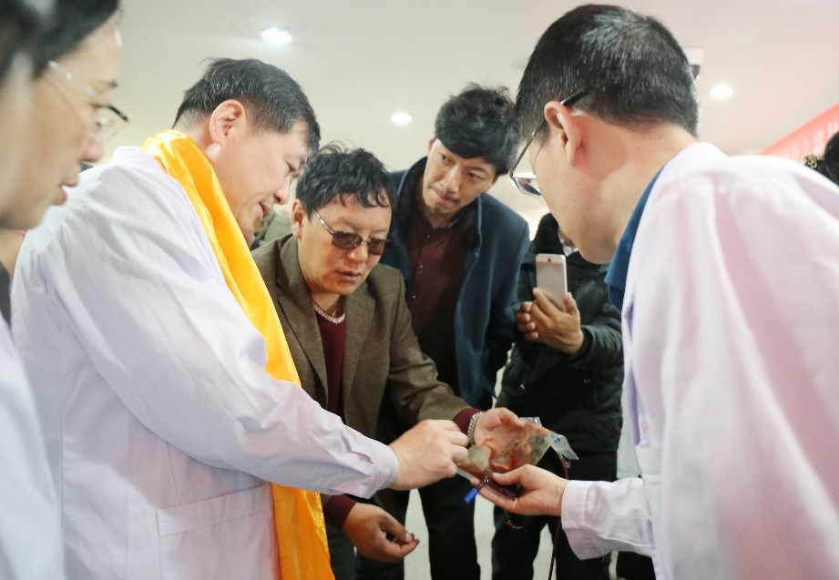 义诊当天,董家鸿进行了一台重症包虫病患者手术。年轻的藏族女同胞已是第三次接受手术,胆漏一年余,腹腔严重粘连,肝门部血管、胆管等结构转位,难题一一摆在术者面前。董家鸿走上手术台,在当地医生的配合下,他反复指挥着,“再来一次”,“再来一次”,直至占患者肝脏80%体积的病灶被顺利切除。一位当地医师电话向等候消息的副院长反馈:“手术真的很难,但很顺利。”