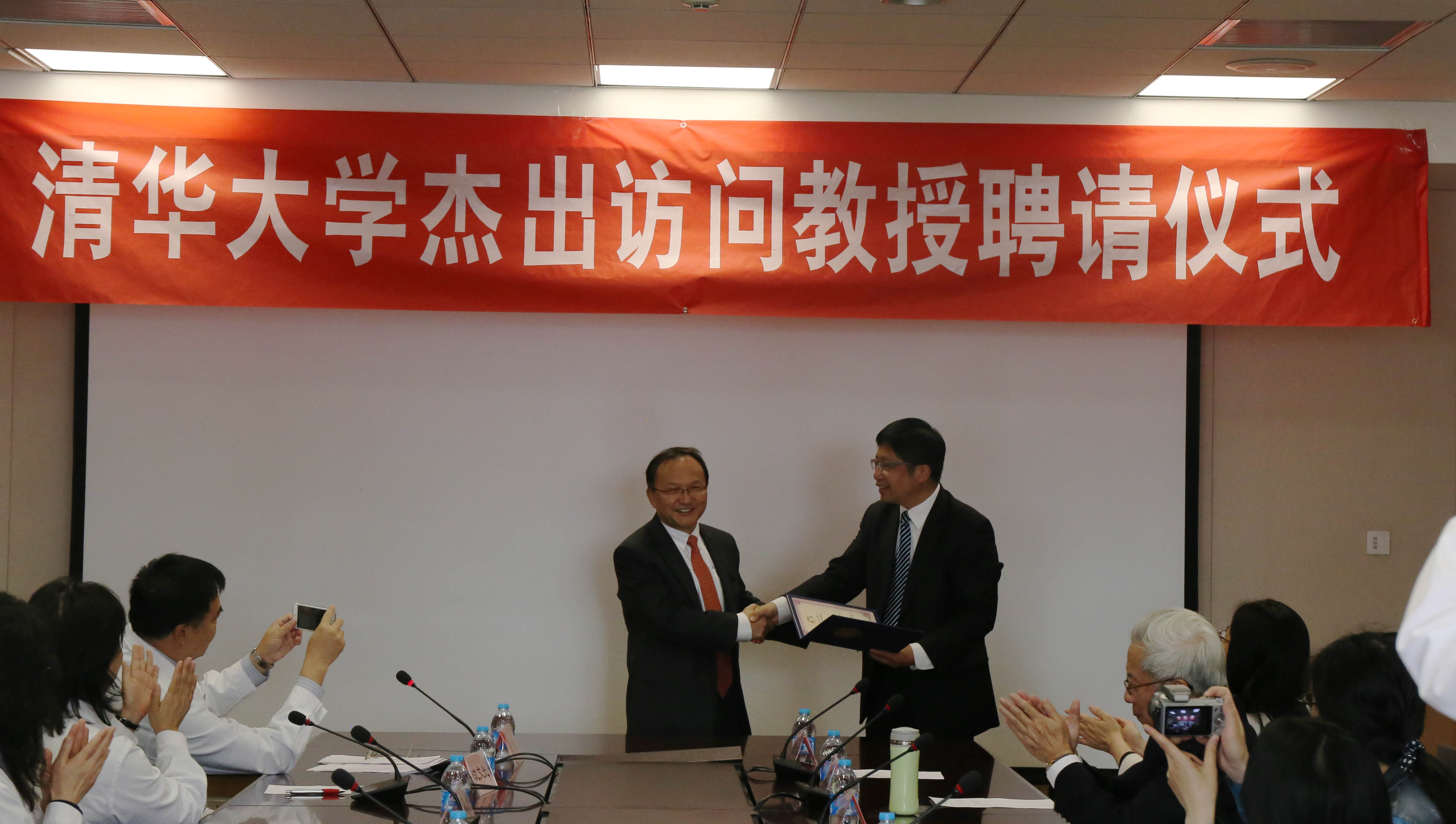 清华长庚医院4月20日电(通讯员 陈华夏)4月20日,美国梅奥诊所心脏中心主任沈文光教授受聘为清华大学杰出访问教授仪式在北京清华长庚医院举行。清华大学副秘书长、清华大学医学中心副主任、北京清华长庚医院党委书记王志华出席仪式并向沈文光教授颁发聘书。