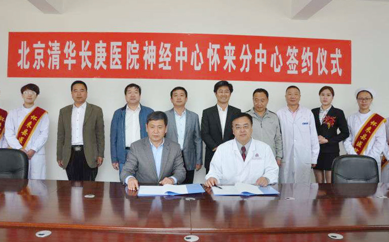 张志友、王劲一同为“北京清华长庚医院神经中心怀来分中心”揭牌。姜卫东、王劲代表两家医院签订了合作协议。由此,怀来方面可根据患者需求转诊至清华长庚,清华长庚可将处于恢复期、康复期的患者或已确诊稳定治疗的患者,转回怀来县医院进行跟踪治疗和管理,以此保证患者抢救的时效性、治疗的可靠性,及居家康复的便利性。同时怀来分中心的建立是两家医院合作的一个开端,未来两家医院可在更广泛的领域合作,共同服务京津冀地区的百姓。