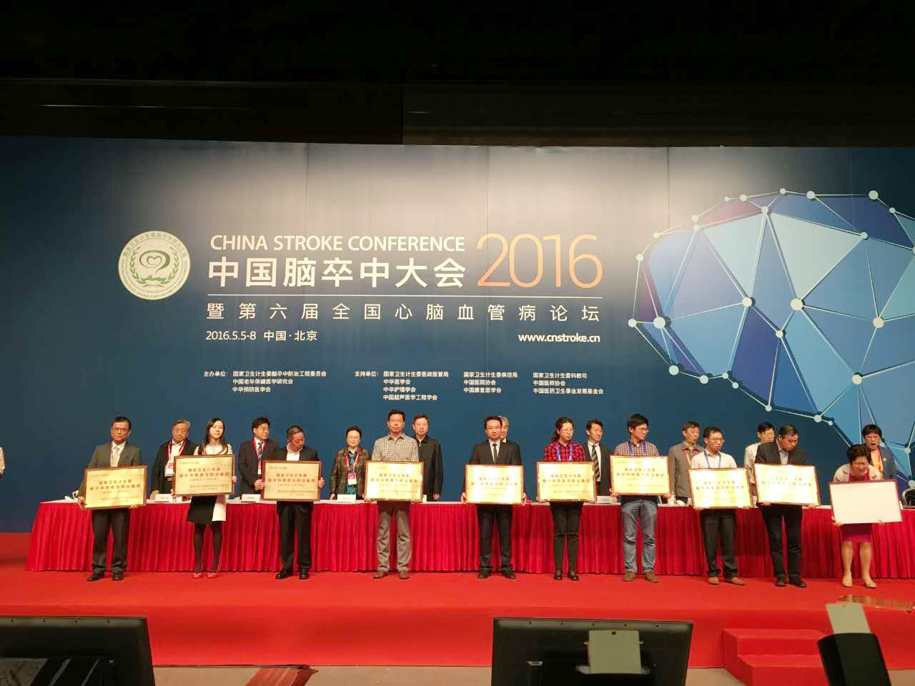 为提升我国心脑血管疾病防治水平,加强脑卒中多学科防治工作的协作能力,在 2015 年 5 月的脑卒中大会上正式启动中国卒中中心建设工作。本次会议,为工作合格的北京清华长庚医院等 21 家省级基地医院进行授牌,给予“国家卫生计生委脑卒中筛查与防治基地医院”称号。北京清华长庚医院总执行长郭明和、院长助理武剑受邀参加授牌仪式,并代表全院职工接受这一荣誉。