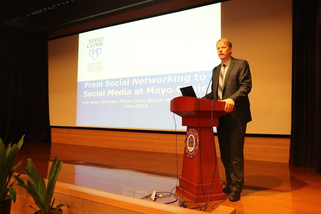 李教授讲述了美国梅奥诊所从社交网络时代到新媒体时代,宣传营销策略的改变,结合电视、网络传媒的发展,讲述梅奥如何跟上媒介发展的节拍,做好健康科普和在线问答服务。