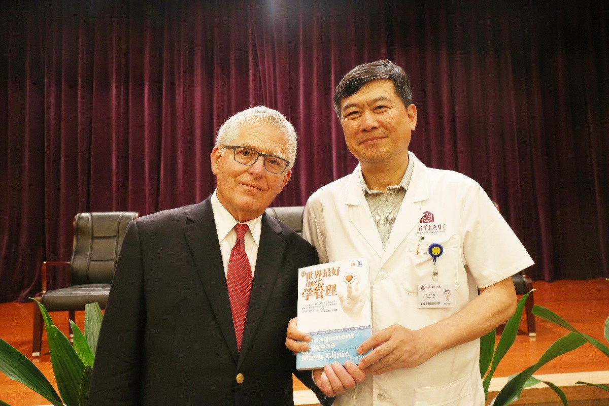 清华长庚医院6月16日电(通讯员 韩冬野)6月15日,《向世界最好的医院学管理》作者、梅奥市场部名誉主席肯特·塞特曼,携手梅奥诊所社会媒体关系部主任李·奥瑟,一同走进北京清华长庚医院,交流医院管理经验。交流会由王劲副院长主持。
