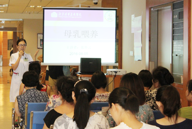 北京清华长庚医院产科护士长张传云于孕妇学校进行“母乳喂养”的专题讲课