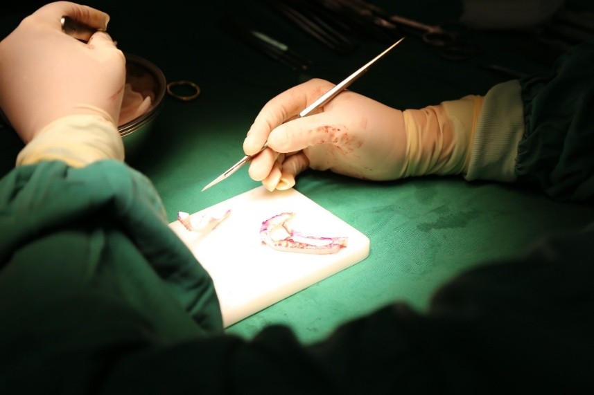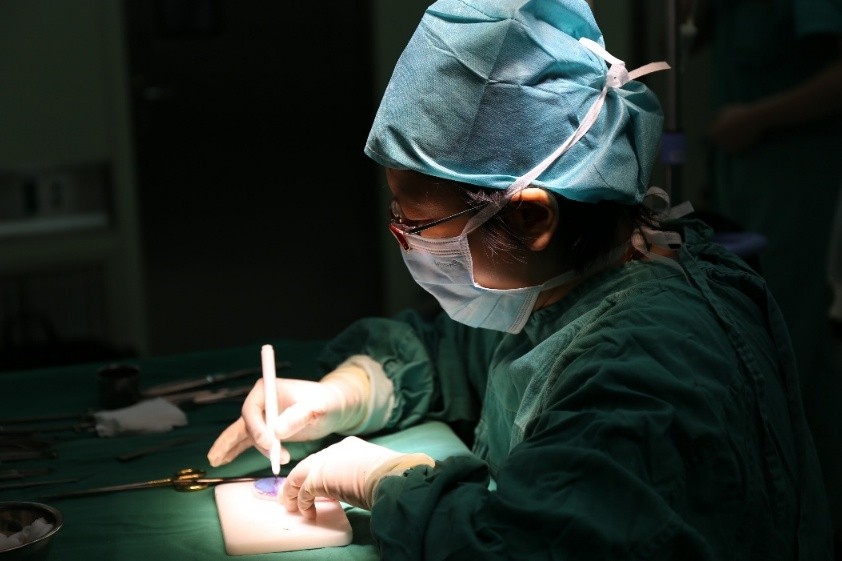 图为北京清华长庚医院整形外科主任张家宁教授采肋软骨重塑耳廓