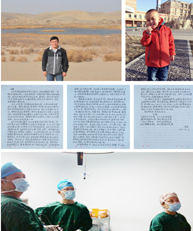 上图为北京清华长庚医院普外科霍东方医师、儿子东东,三页家书,以及中秋前夕的微创手术(中)