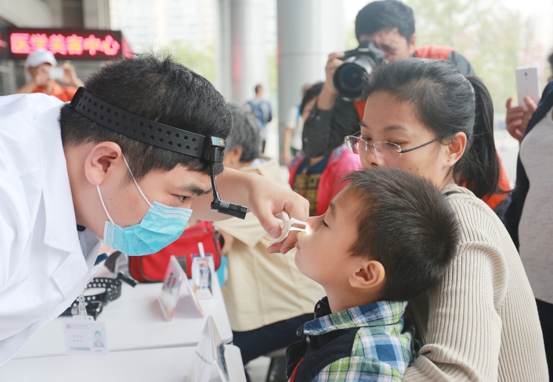 图为北京清华长庚医院耳鼻咽喉头颈外科医师为社区里的儿童义诊