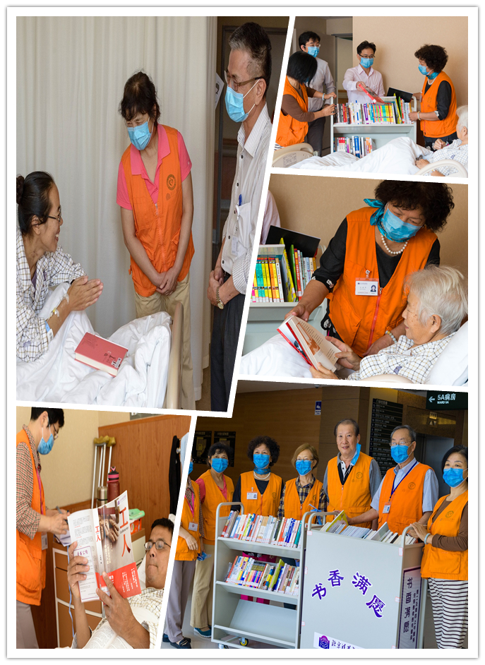 北京清华长庚医院“病房流动图书馆”成立,郭明和总执行长宣导志愿服务