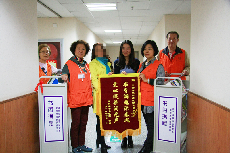 患者为“病房流动图书馆”的志愿者团队送来了锦旗