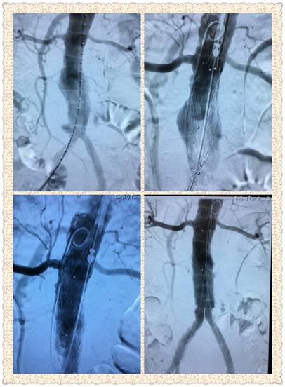 腹主动脉瘤成功修复(左上术前,右下术后)
