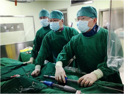 吴巍巍主任、赵俊来医师、曹战江医师在术中精准定位并释放支架