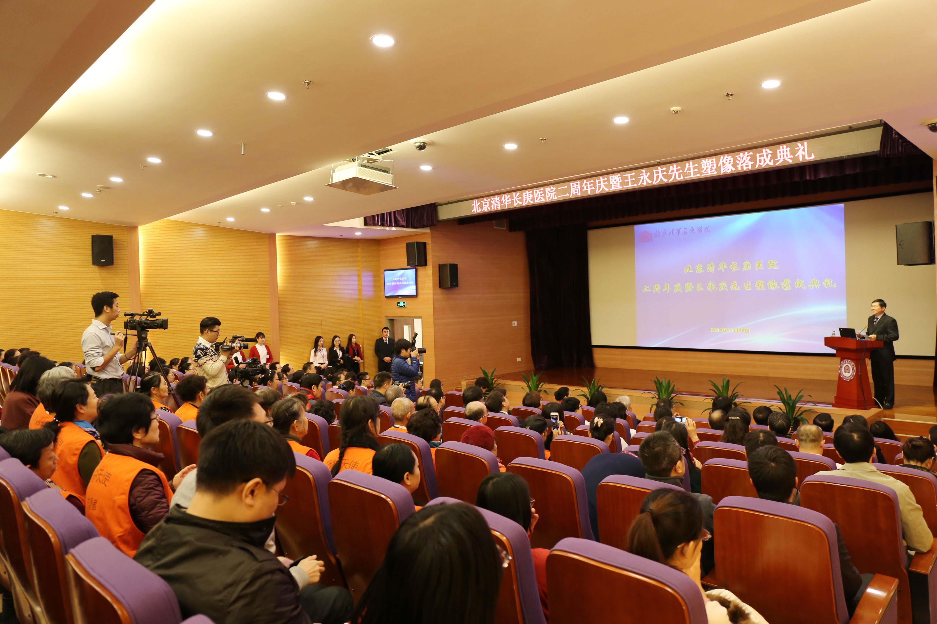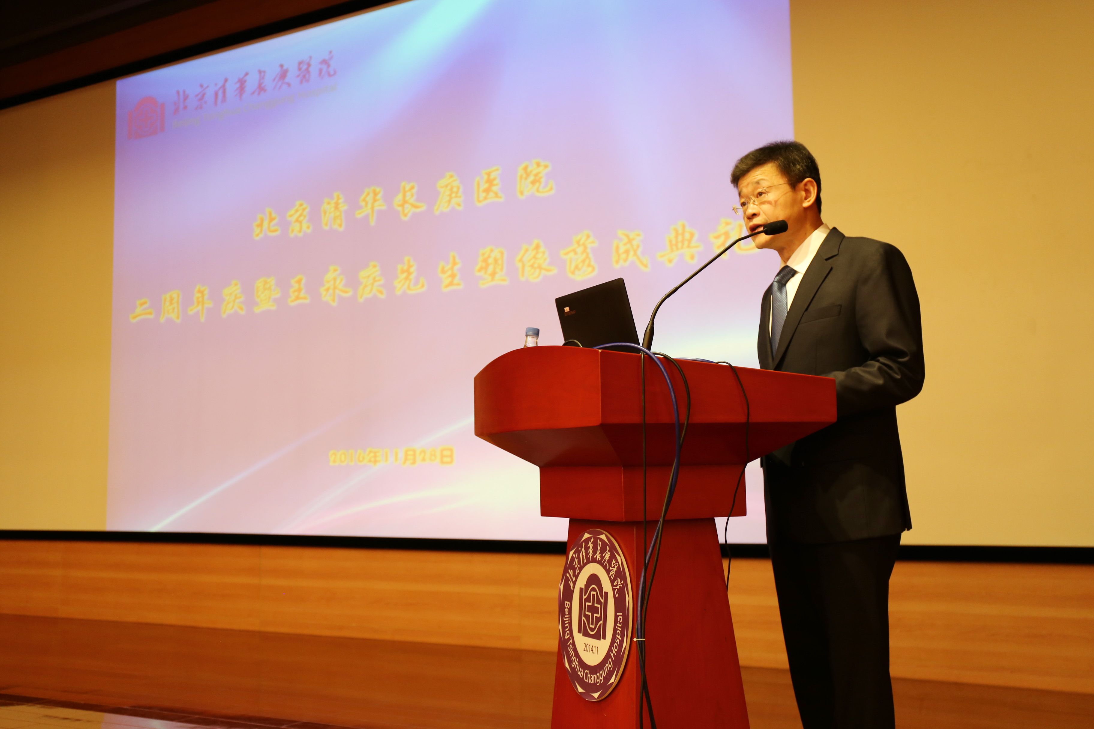 清华长庚医院11月28日电(通讯员 韩冬野)2016年11月28日,清华大学附属北京清华长庚医院开业2周年。在这一喜庆的日子里,台湾长庚纪念医院创办人王永庆先生的夫人李宝珠女士,台塑关系企业副总裁王瑞华女士、总管理处总经理王瑞瑜女士,台湾林口长庚纪念医院名誉院长、北京清华长庚医院顾问院长陈敏夫先生,特地率队从宝岛台湾来京。国务院台湾事务办公室交流局局长黄文涛先生,清华大学党委书记陈旭教授,清华大学原校长、清华大学两岸发展研究院院长顾秉林院士,常务副书记、副校长、北京清华长庚医院理事长姜胜耀教授,中国环境科学学会秘书长、北京清华长庚医院前党委书记王志华先生等,一同为北京清华长庚医院庆生,为王永庆先生纪念雕塑揭幕,并视察了医院的发展运营情况,亲切问候医院职工。