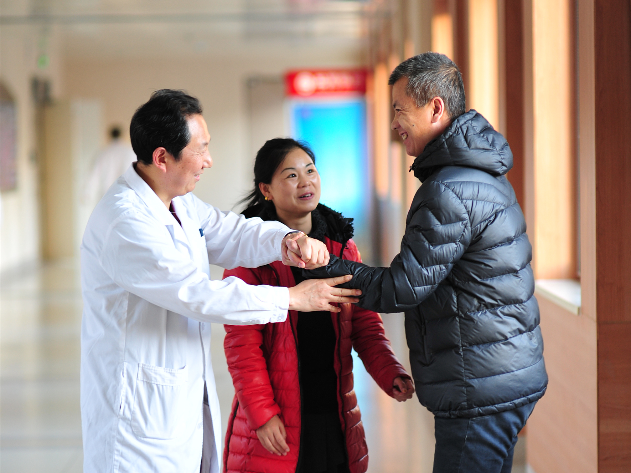 编者按:术前,北京清华长庚医院神经外科主任王贵怀为患者小智打气,在文化长廊里的这一握,是一次生命的交托,医者握着这份信任,去挑战生命禁区,患者握着这份相信,准备迎接重生的曙光。
